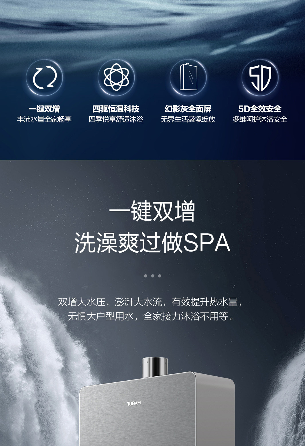 双增零冷水、四驱恒温科技2.0、5D全效安全