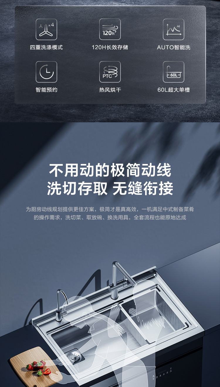 智洗锅碗,畅洗蔬果,上下双洗,一机双全