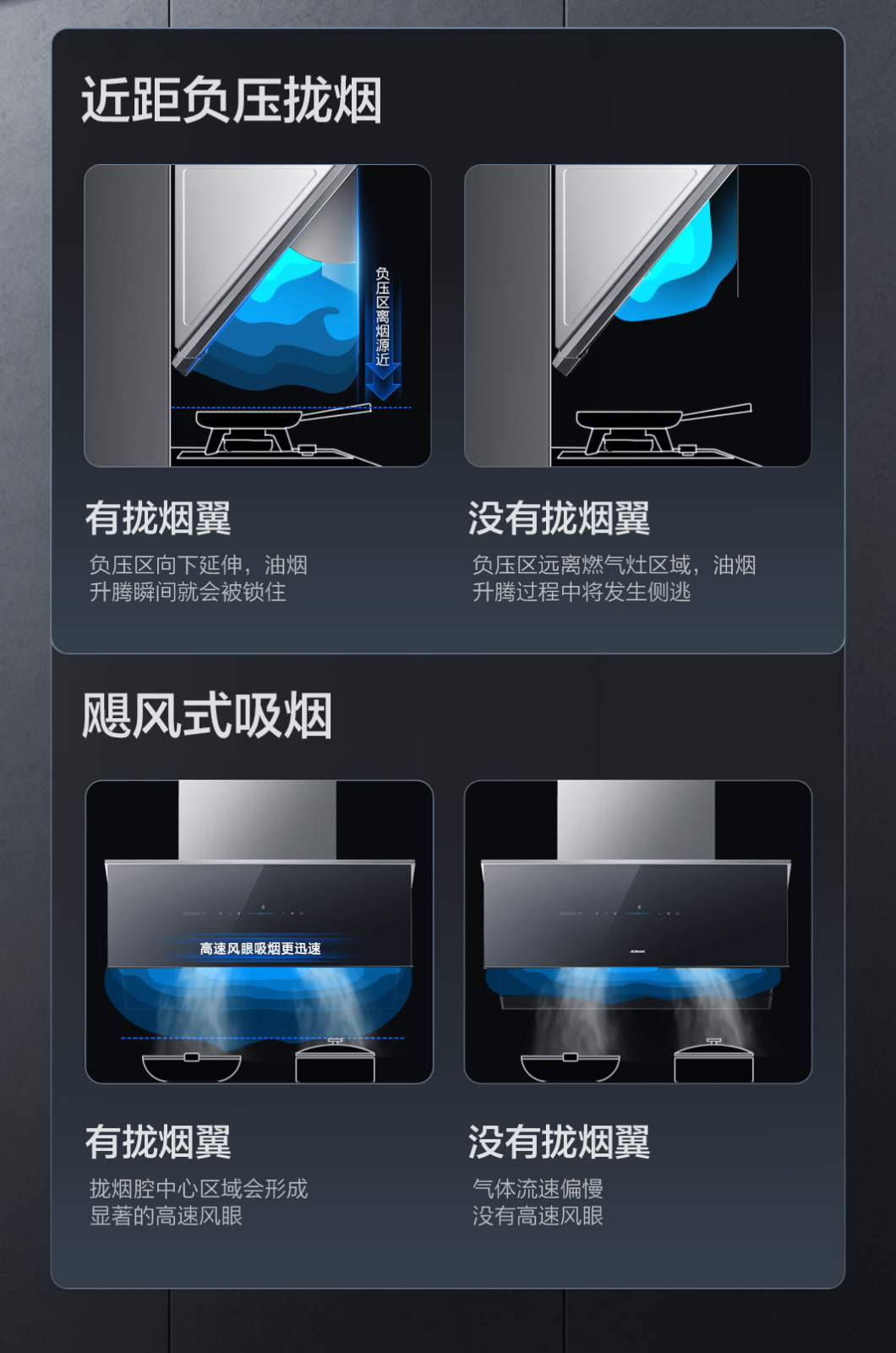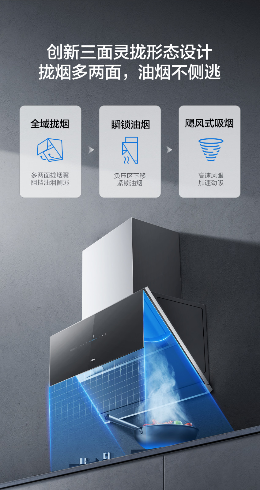 拢烟多两面,油烟不侧逃