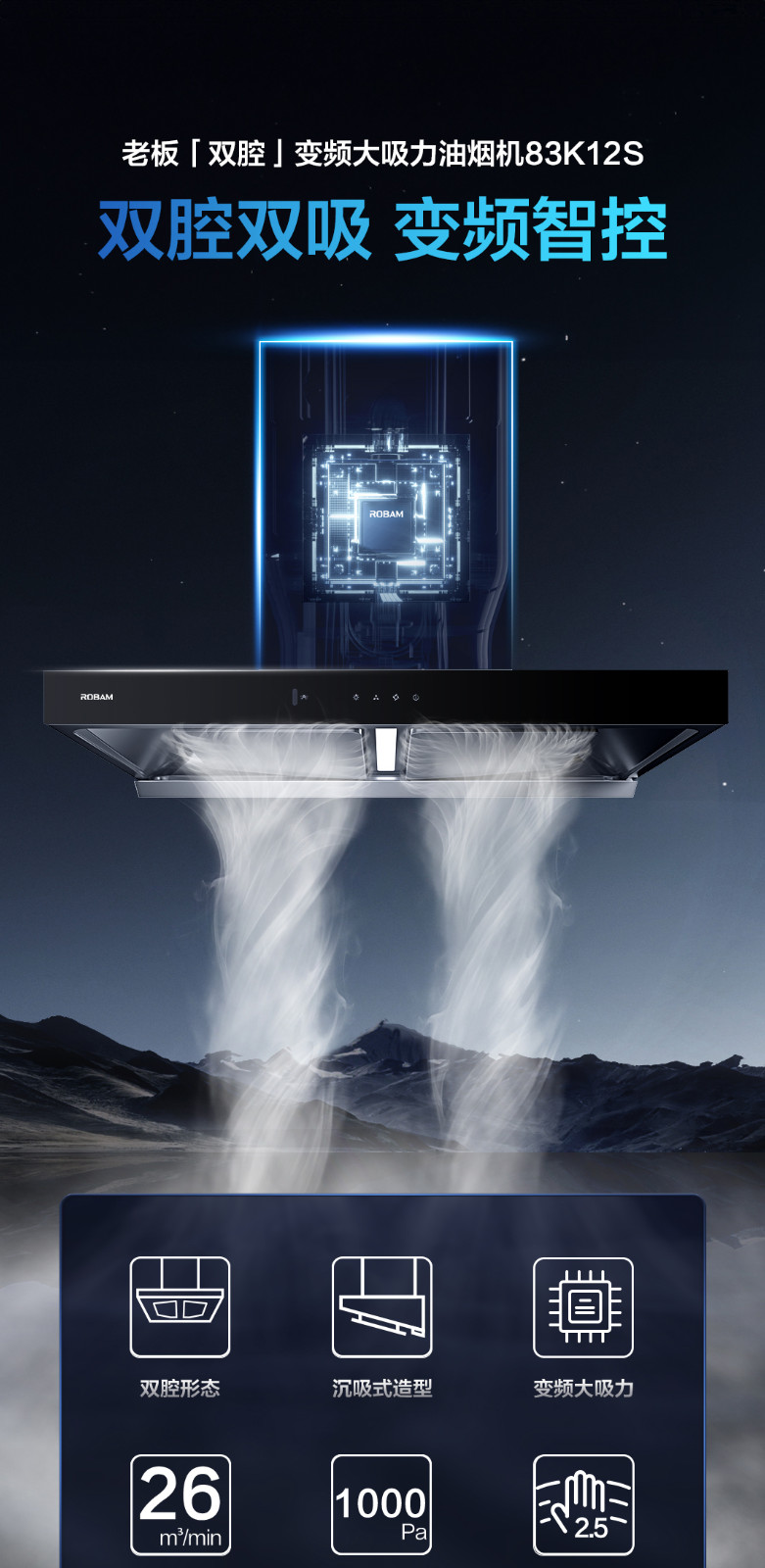 双腔变频大吸力油烟机83K12S